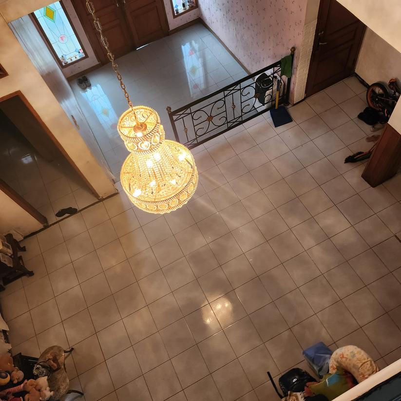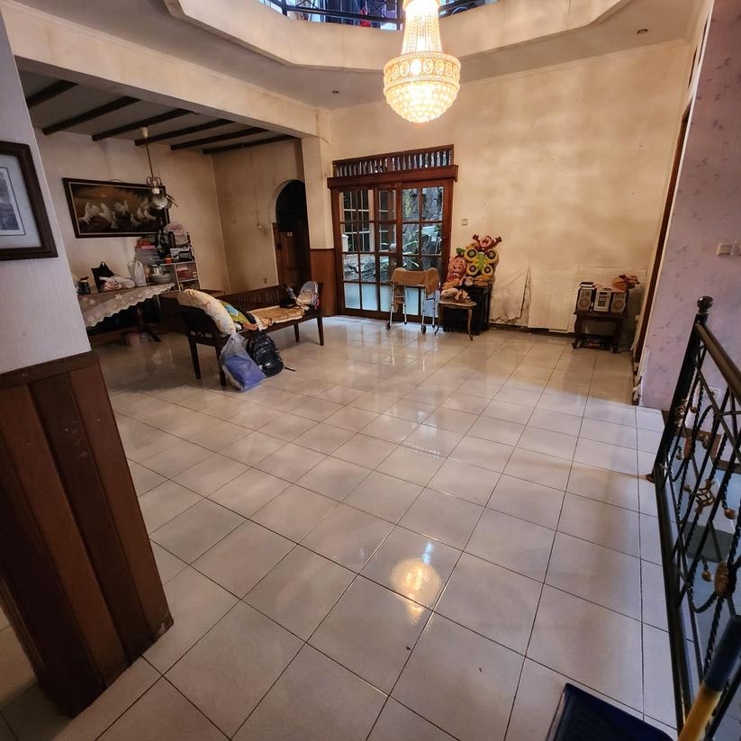 Fasilitas : Garasi 1 mobil + Carport 2 mobil, Dapur bersih + dapur kotor, Ruang Tamu, 3 Ruang keluarga, kolam ikan, lemari pakaian 1, lemari pajangan 3, lampu gantung 1